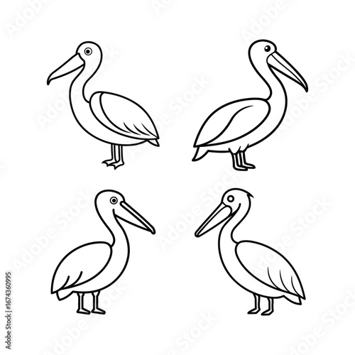 set, pelican, bird, line, art, vector, illustration, animal, design, object, unit, component, wildlife, nature, feather, fly, wing, ornithology, beak, creature, exotic, marin, coastal, water, winged, fauna, habitat, graphic, modern, creative, icon, decor, pattern, avian, element, artistic, natural