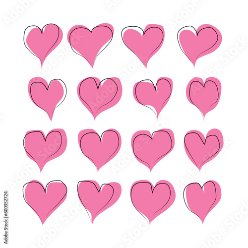 A set of pink hearts of different shapes. Vector flat illustration.