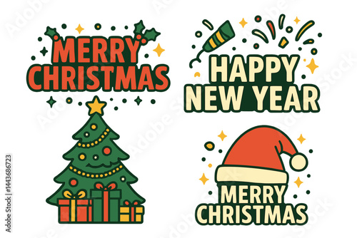flat, design, web, signs, symbol, vector, illustration, object, abstract, event, christmas, new year, celebration, holiday, greeting, card, banner, business, snow, flake, gift, wishes, marketing, pattern, modern, tree, background, mistletoe, retro, invitation, nature, cervid, typography, reindeer, season, party, winter, texture, poster, merry, happy, template, vintage