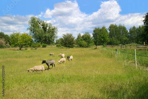 sunny, herd, sheep, brandenburg, tour tourism, walking, path, environment, cloud, blue, sky, beautiful, countryside, rural, animal, meadow, grass, vacation, travel, landscape, activity, leisure, green, day, spring, summer, panoramic, panorama, scenery, scene, scenic, view, federal state, german, park, nature, wild, lowland