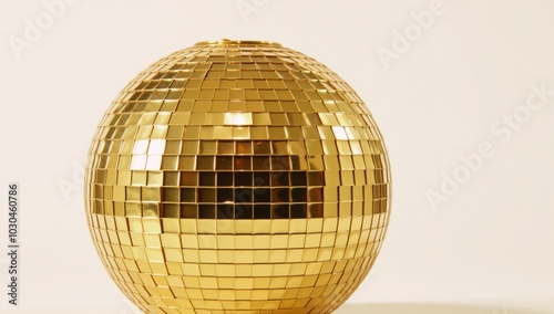 A shimmering gold disco ball against a crisp white backdrop