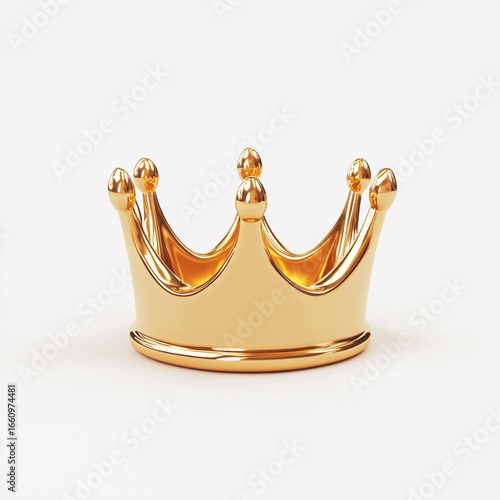 A shiny, polished golden crown with spiked points and orbs on top is depicted against a simple, clean white background, suggesting luxury and royalty.
