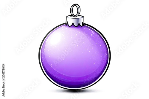 A shiny purple Christmas ornament hanging with a silver cap, reflecting light and sparkles