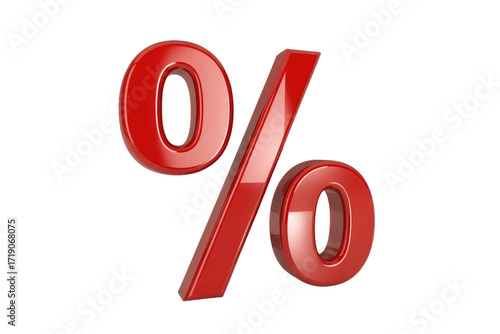 A shiny, red 3D percentage symbol, isolated on a transparent background. background removed
