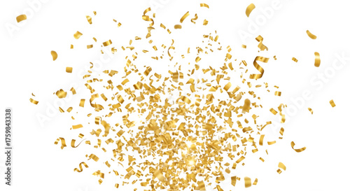 A shower of golden confetti exploding outwards, isolated on transparent background