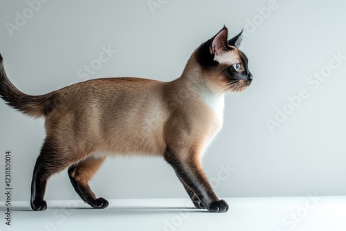 A Siamese cat walking on a white surface, great for pet or animal related concepts