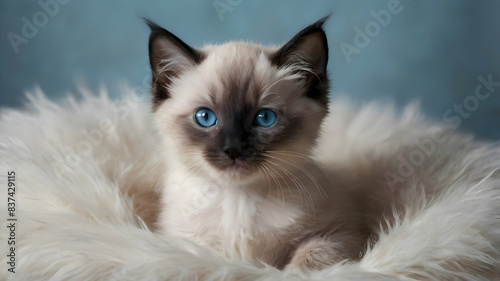 a Siamese kitten with pale blue eyes, illuminated by a spotlight,HD, High Quality image