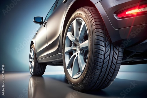 a side view of the car into the interior, where its wheels are mostly visible. studio background