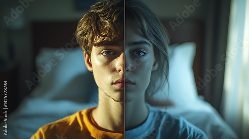 side by side, comparison, sick, patient, flu, healthy, person, effect, contrasting, colours, medicals, realism, high, detail, powerful, storytelling, cinematic, documentary, lighting, microscopic, molecular, research, conceptual, digital, ai, futuristic, structured, analysis, simulation, advanced, visualisation, safety, protection, awareness, prevention