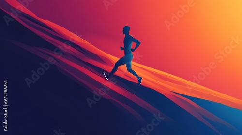 A silhouette of a male runner ascending a colorful gradient hill at sunset, capturing the essence of determination and speed.