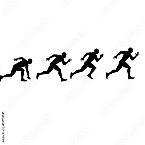 A silhouette sequence captures a runner's progression, showcasing the dynamic motion and determination of a person sprinting across a white background.