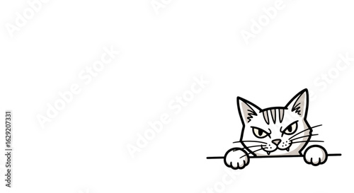 cat, illustration, black, white, peeking, border, line, art, simple, drawing, animal, cute, tabby, cartoon, design, graphic, minimalist, grey, paw, face, angry, looking, striped, fur, vignetting, outline, character, style, modern, isolated, pet, domestic, mammal