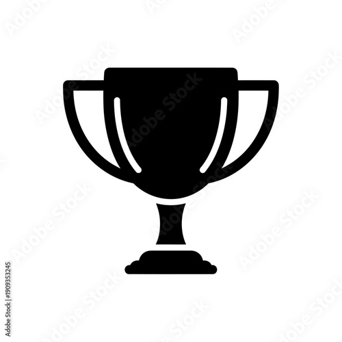A simple, black trophy cup silhouette on white background, celebrating achievement