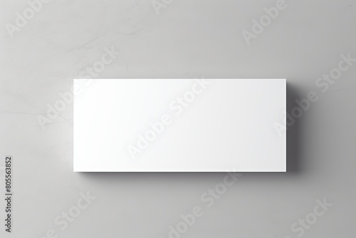 A simple blank white rectangular box or panel placed horizontally on a gray marble surface, casting a soft shadow beneath.