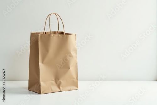 shopping bag, paper bag, recyclable, recyclable, environmentally friendly, retail, purchase, consumerism, merchandise, cardboard box, blank, empty, simple, minimalist, background, studio shot, presentation, commerce