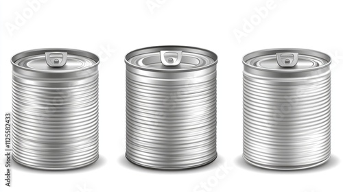 A simple composition of three metal cans on a clean white surface