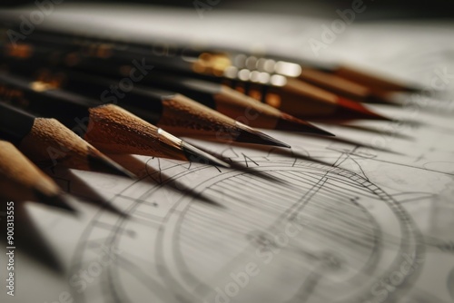 A simple drawing on paper against a plain background, highlighted by clean lines and crisp details, with realistic lighting emphasizing a minimalist aesthetic