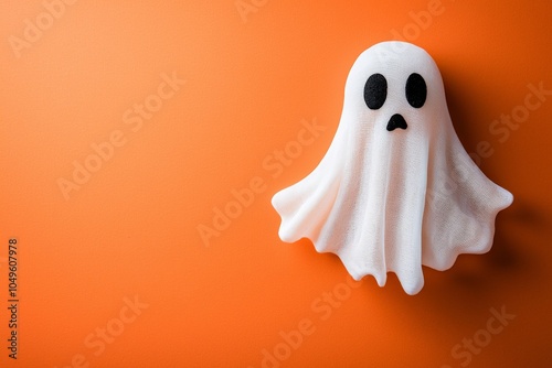 a simple small ghost figure made out of white cloth on an orange background