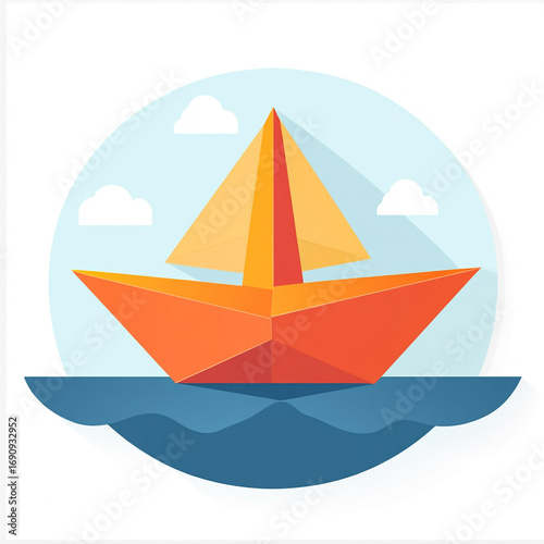 paper, boat, ship, origami, folding, art, craft, colourful, yellow, red, blue, geometric, shape, simple, clean, minimalist, design, graphic, illustration, digital, render, three-dimensional, icon, object, playful, childhood, imagination, toy, journey, voyage, adventure, creative, bright, vibrant, studio, shot, product, shadow, isolated, white, background, abstract, form, concept, symbol, travel, freedom, water, sail