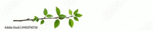 A single branch with leaves isolated on a white background, solo branch, greenery