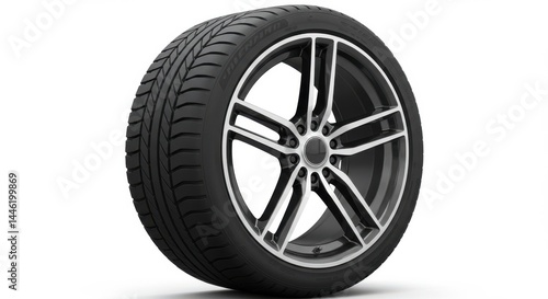 tire, car, wheel, rim, automobile, vehicle, rubber, transportation, automotive, black, silver, alloy, design, pattern, tread, profile, isolated, studio, background, modern, style, shiny, closeup, equipment, part, round, white, grip, road, drive