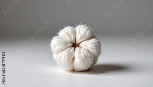 cotton, ball, single, sitting, front, giving, impression, soft, fluffy, its, white, fiber, against, plain, background, contrast, subject, creating, sense, still, life, additional, object, texture, present