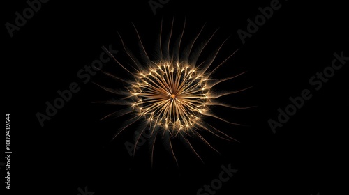 A single golden firework blooming in the night sky, minimalistic yet captivating,