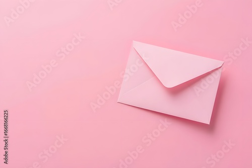 A single pastel pink envelope is positioned on a soft pink background with ample copy space
