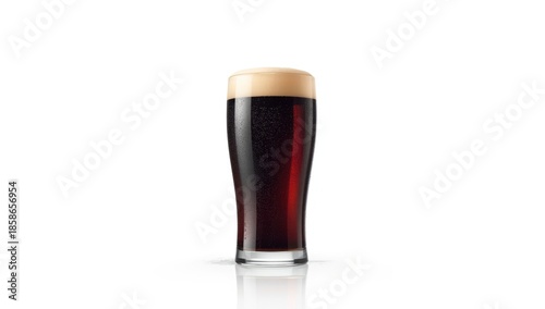 A single pint of dark stout beer with a creamy head, suitable for menu layouts