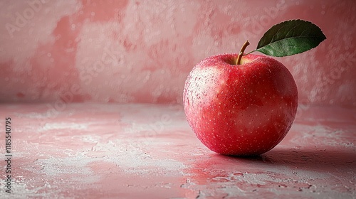 A Single Red Apple with Water Drops on Pink Background: A Still Life Photography