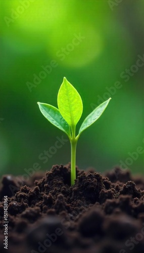 A single, vibrant green sprout pushing through rich soil, symbolizing the emergence of spiritual growth and the potential for inner blossoming , new beginning, vitality, self-discovery