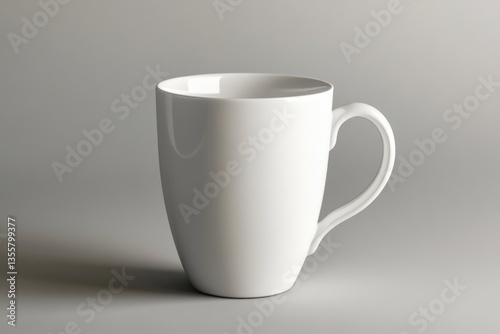 A Single White Ceramic Mug on a Gray Background Studio Shot Product Photography