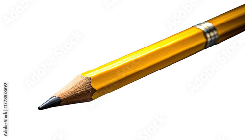 A single yellow pencil with an eraser and graphite tip on a Transparent background