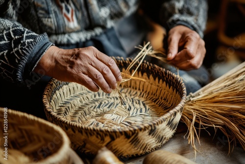 weaving, basket, pattern, visual, sustainable, labor, quality, process, community, skill, heritage, creativity, indoor, material, artistic, intricate, tool, hand, life events, artistry, exhibit, work, fiber, dedication, rural, craftsmanship, hand-made, craft, local, art, artisan, design, texture, detail, beauty, nature, collected, culture, traditional, brown