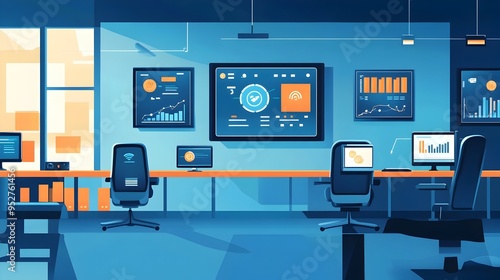 A sleek and modern graphic depicting a high tech office meeting room equipped with IoT connected devices digital screens and other smart technologies to facilitate efficient and decision making