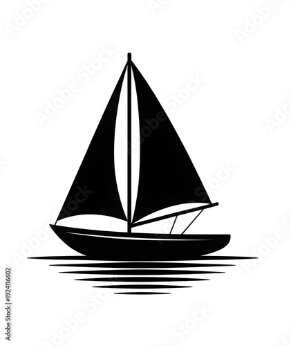 sailboat, black, white, sail, water, ripple, calm, serene, peaceful, boat, mast, triangular, hull, gliding, environment, single, central, gentle, outward, sleek, rippling, image, sailing, vessel, ocean, lake, river