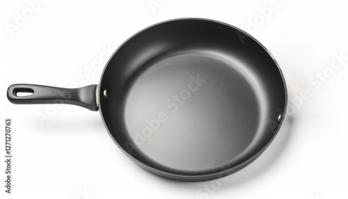 A sleek black frying pan emphasizes a non-stick surface and modern design, suitable for promoting kitchen tools, cookware, or culinary education.