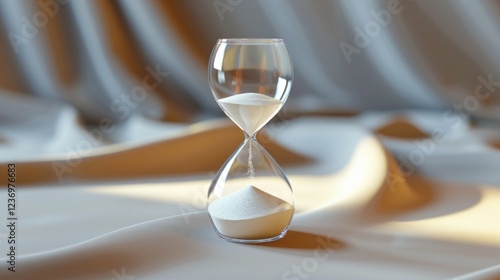 A sleek hourglass on soft fabric, sand flowing gently, invites quiet contemplation on the nature of time