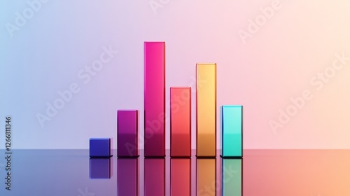 A sleek, modern bar chart with gradient colors and polished reflections, isolated on a neutral-colored surface, emphasizing the smooth texture