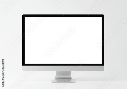 computer, monitor, screen, white, silver, desktop, technology, display, blank, modern, device, electronic, isolated, minimal, studio, shot, plain, background, digital, design, mock, up, empty, clean, presentation, workspace, work, office, equipment