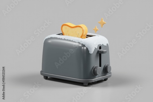 A slice of bread toasts in a gray toaster, with a touch of frost, creating a whimsical breakfast scene.