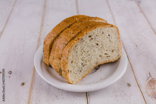 a sliced bread on a wooden table