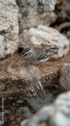 bird, water, nature, rock, wildlife, drinking, habitat, environment, animal, stream, feather, behaviour, ecology, calmness, species, fauna, shore, wet, ripple, natural, landscape, peaceful, scene, closeup, wild, moment, beak, texture, beauty, small, brown, grey, perched, refreshing, mineral, wetland, creek, survival, foraging, nourishment, ecosystem, biodiversity, observation, serenity, exploration, naturalism