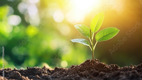 A small plant sprouting from the ground, reaching towards the sunlight, symbolizing the early stages of idea development and growth.