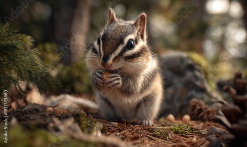A small squirrel is eating a nut