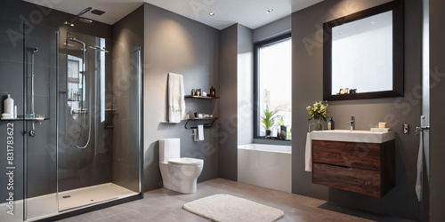 bathroom, interior, home, house, room, design, bathe, sink, luxury, mirror, architecture, shower, furniture, kitchen, indoor, glasses, tile, window, floor, contemporary, apartment, bathtub, nobody, new, light