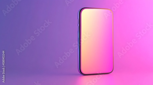 A smartphone stands upright on a pink and purple background, its screen glowing with a gradient of light.