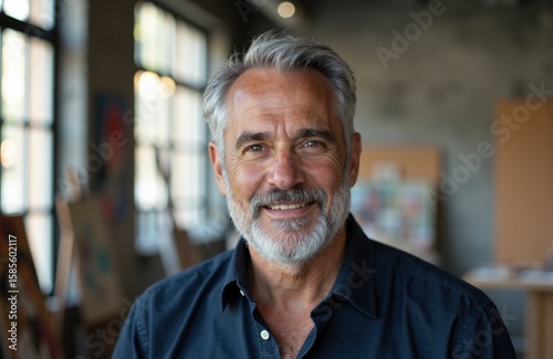 man, male, senior, adult, grey, hair, beard, smile, happy, cheerful, friendly, confident, professional, indoor, modern, bright, casual attire, relaxed, approachable, positive, portrait, head shot, lifestyle, mature, authentic, natural, light, lighting, human, face, expression, emotion, wellness, health, citizen, social, communication, connection