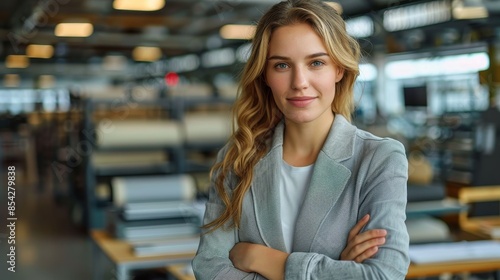 professional, woman, business, workplace, office, smile, positivity, friendly, contemporary, happiness, casual attire, standing, portrait, confidence, corporate, ambition, success, leadership, relaxation, blonde hair, photo, warmth, creativity, human resources, executive, manager, personable, indoor, style, leaning, ease, engagement, satisfaction