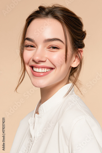 smile, beauty, portrait, woman, joy, grace, serene, youth, friendly, simplicity, tenderness, inspiration, warmth, skin, bliss, personality, chic, glowing, confidence, alluring, expression, make-up, charme, radiance, high-coloured, health, positive, elegance, happiness, captivating, emotion, light, fashionable, showcase, modern, lifestyle, trendy, cheerful, style, fashion, attractive, bright, natural, fresh, uplifting, self-assured